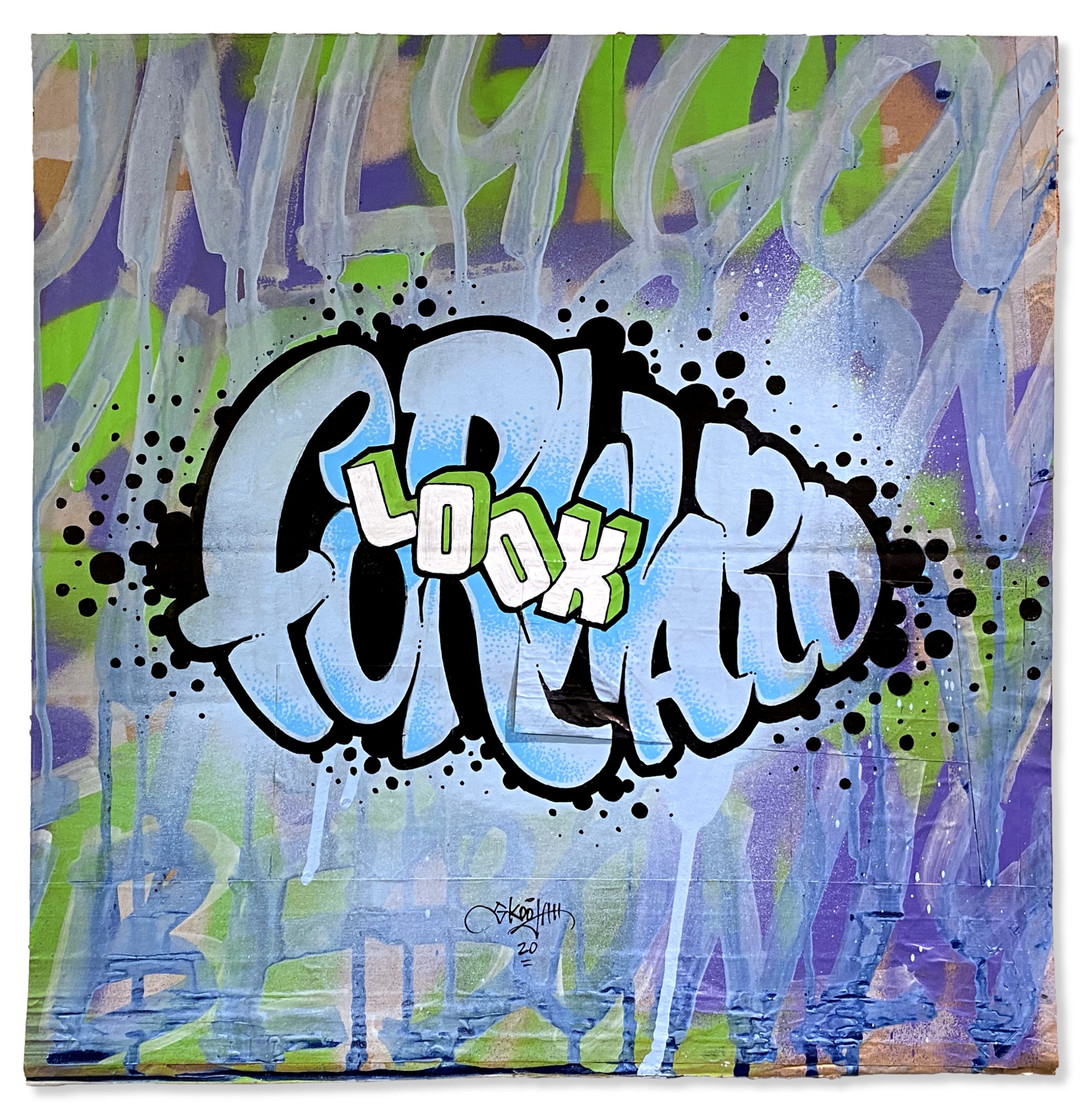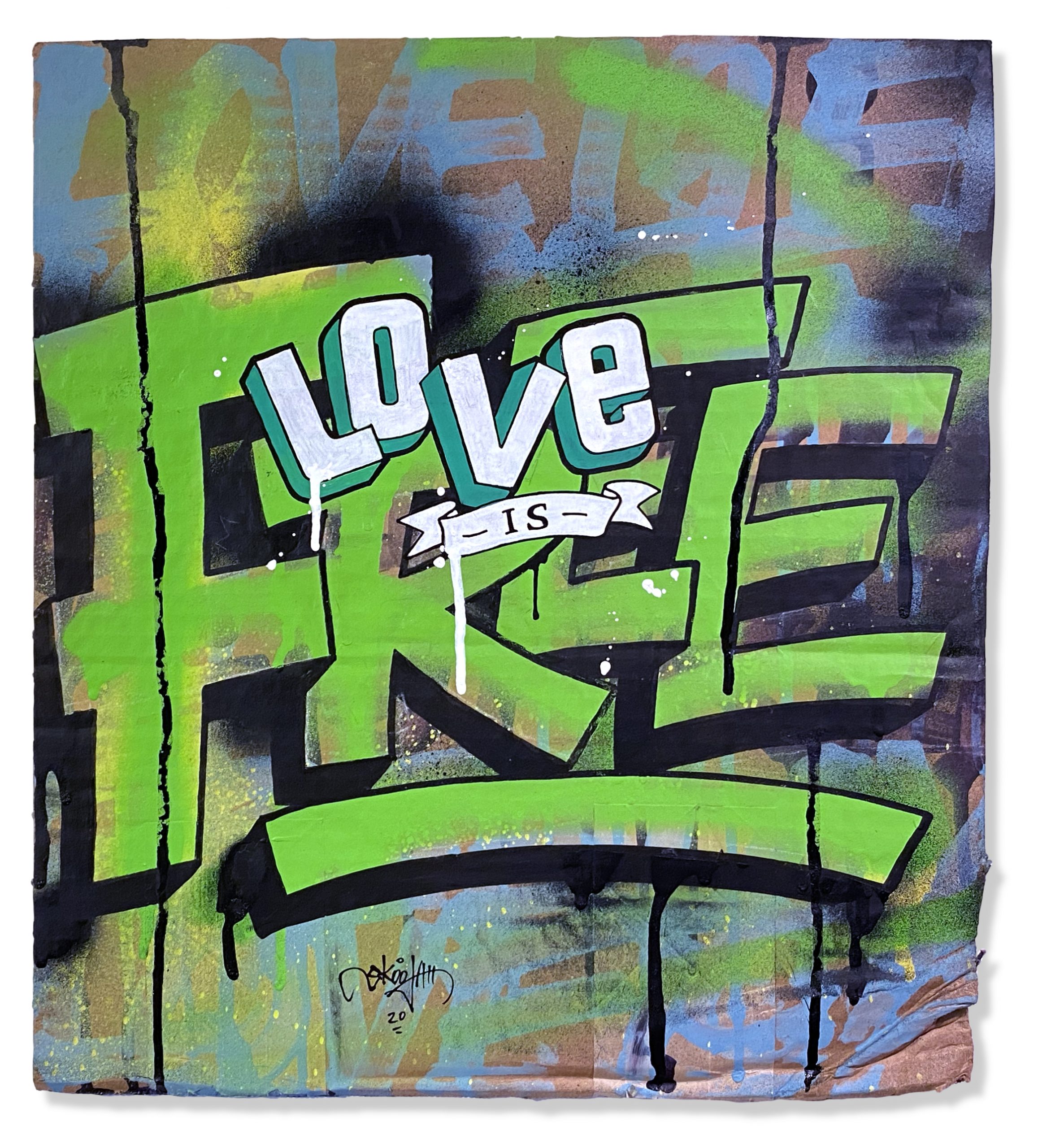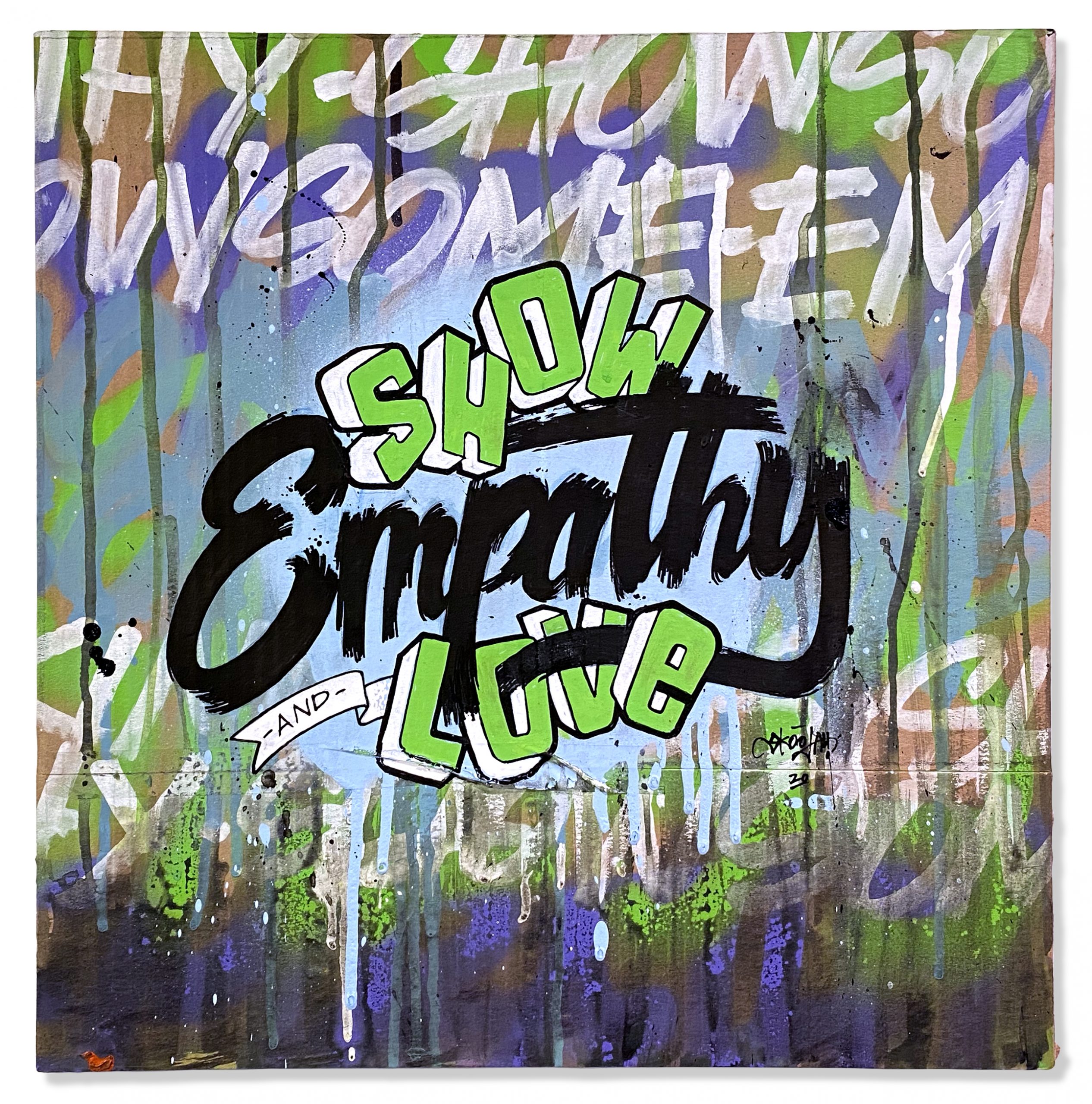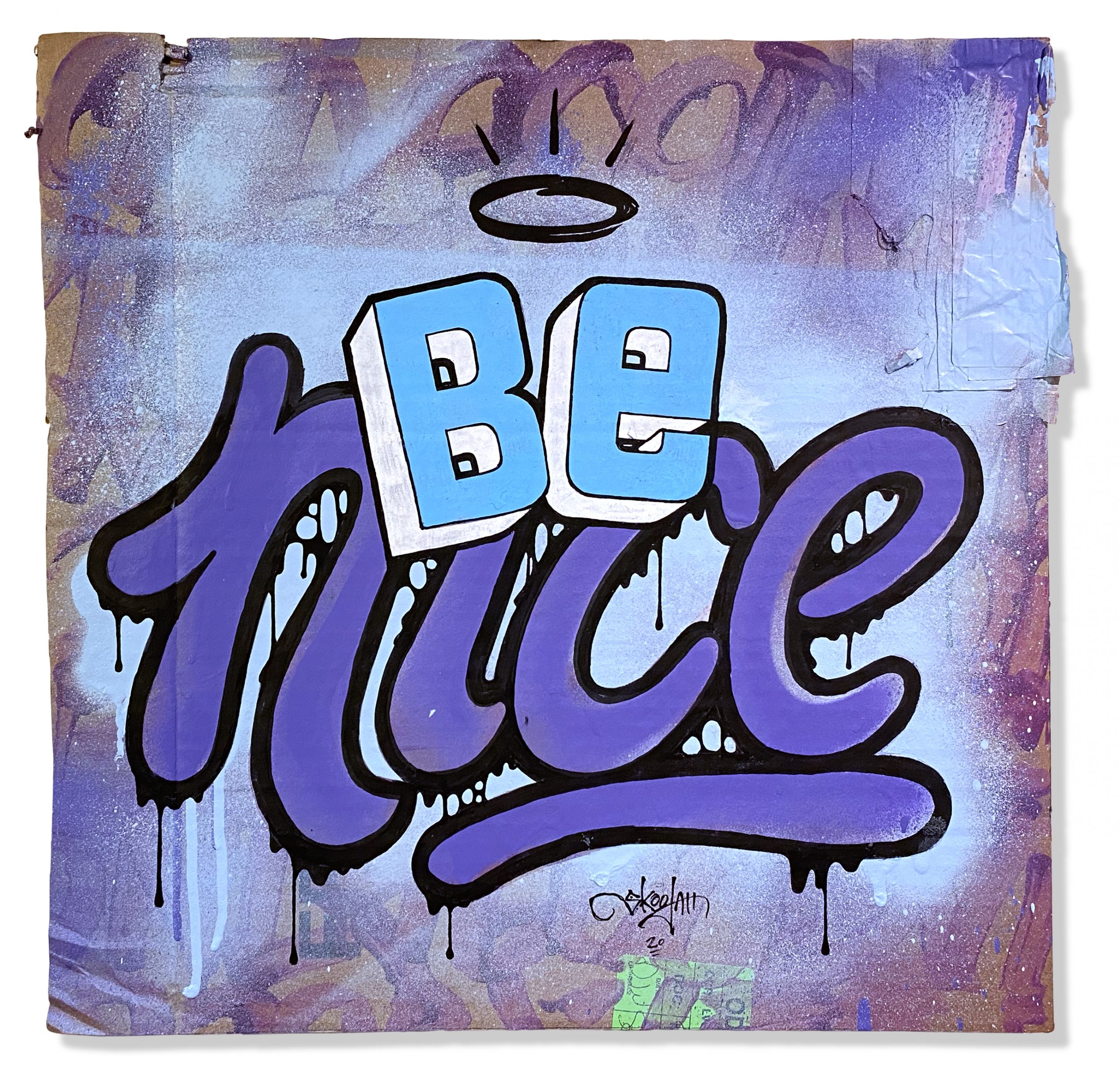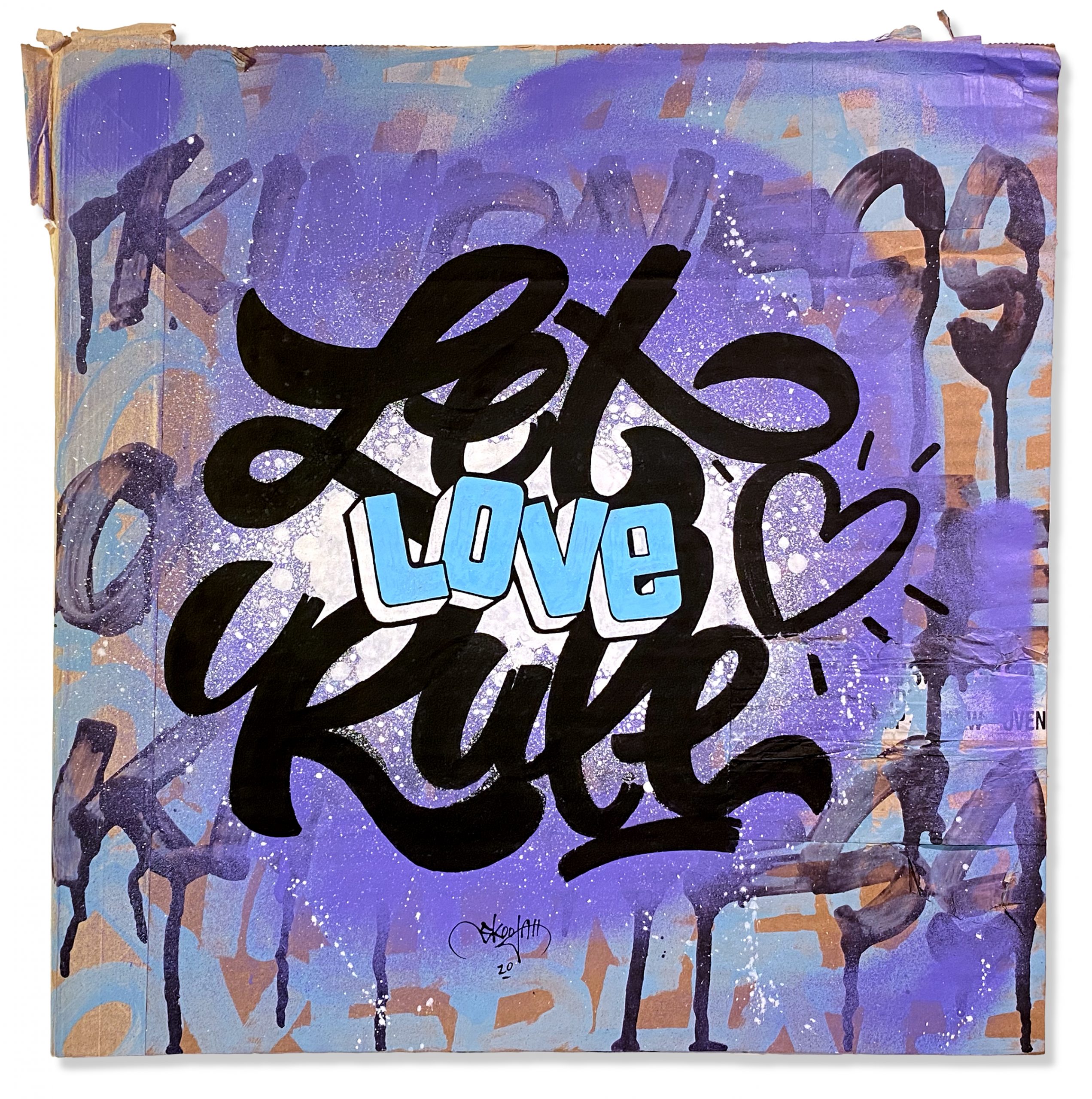 In another effort to up-cycle the Christmas cardboard waste. I did this series of positive statements to remind people to only show good vibes. The world would be a better place if we saw more things about good vibes rather than always seeing the bad. They were originally started to have a solo show in Toronto, then the Covid-19 pandemic hit and the show was canceled. So in my way of staying positive throughout the Covid-19 pandemic I was busy creating these. They were all hand painted using spray paint, paint markers and paint.