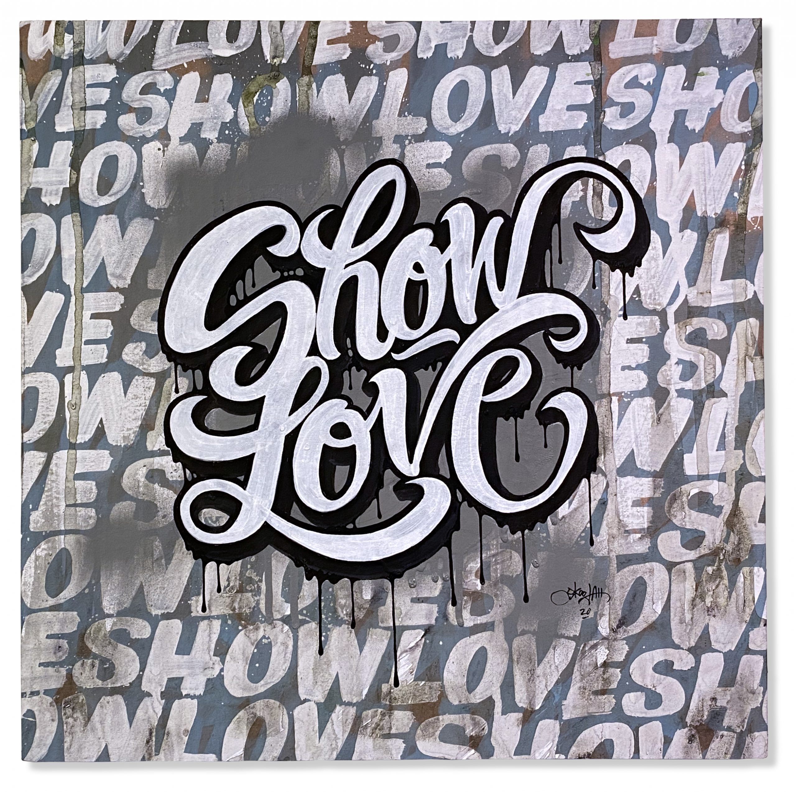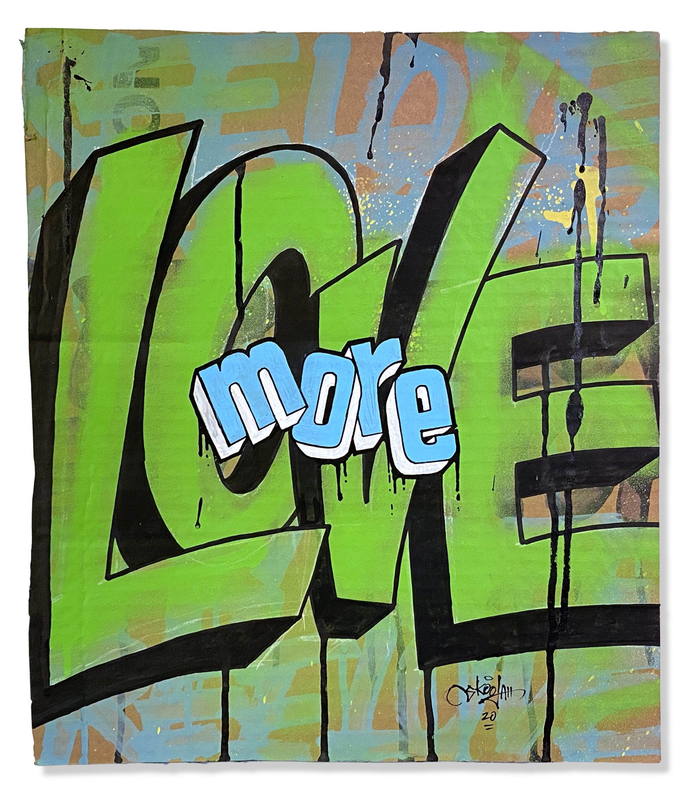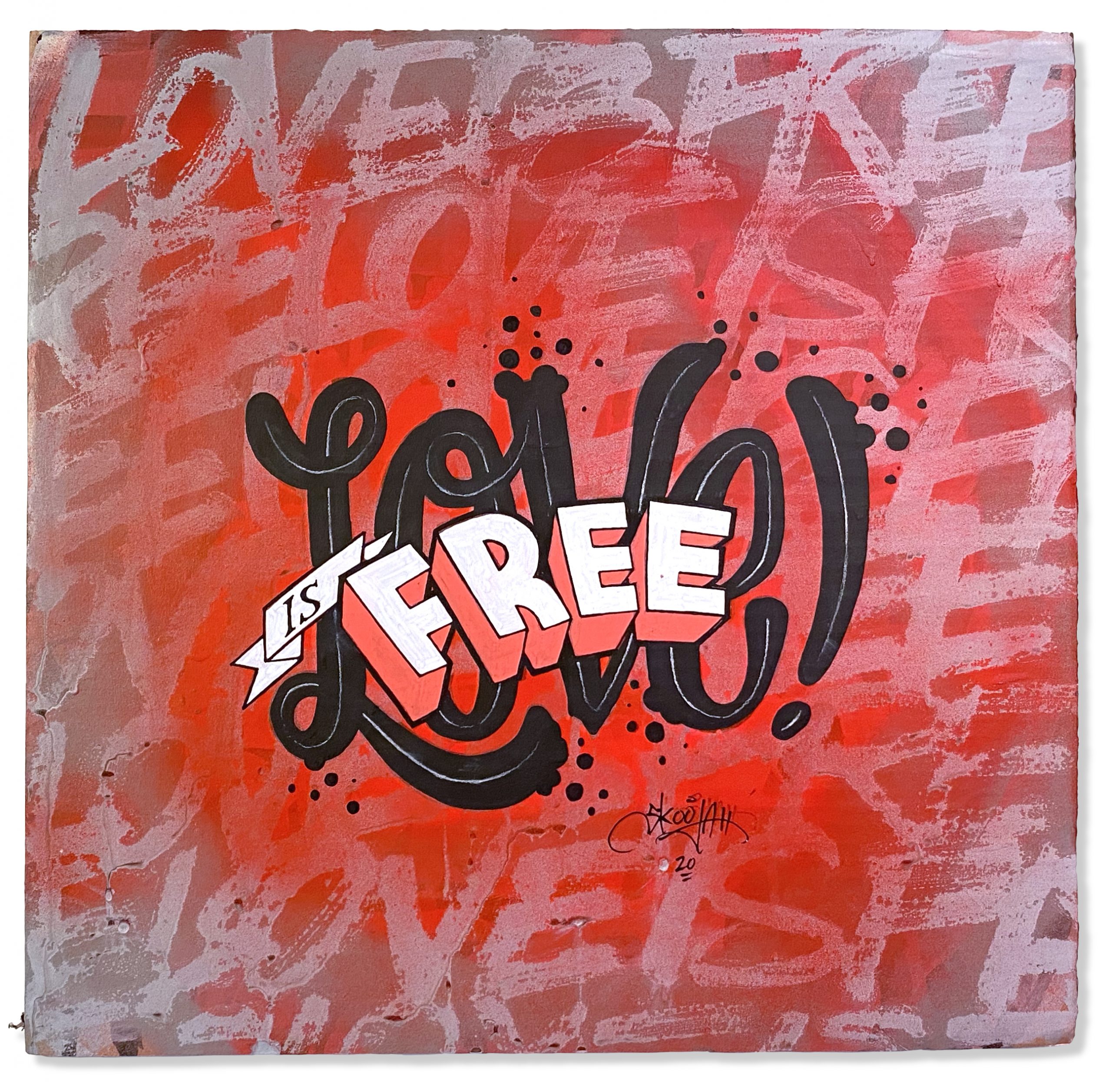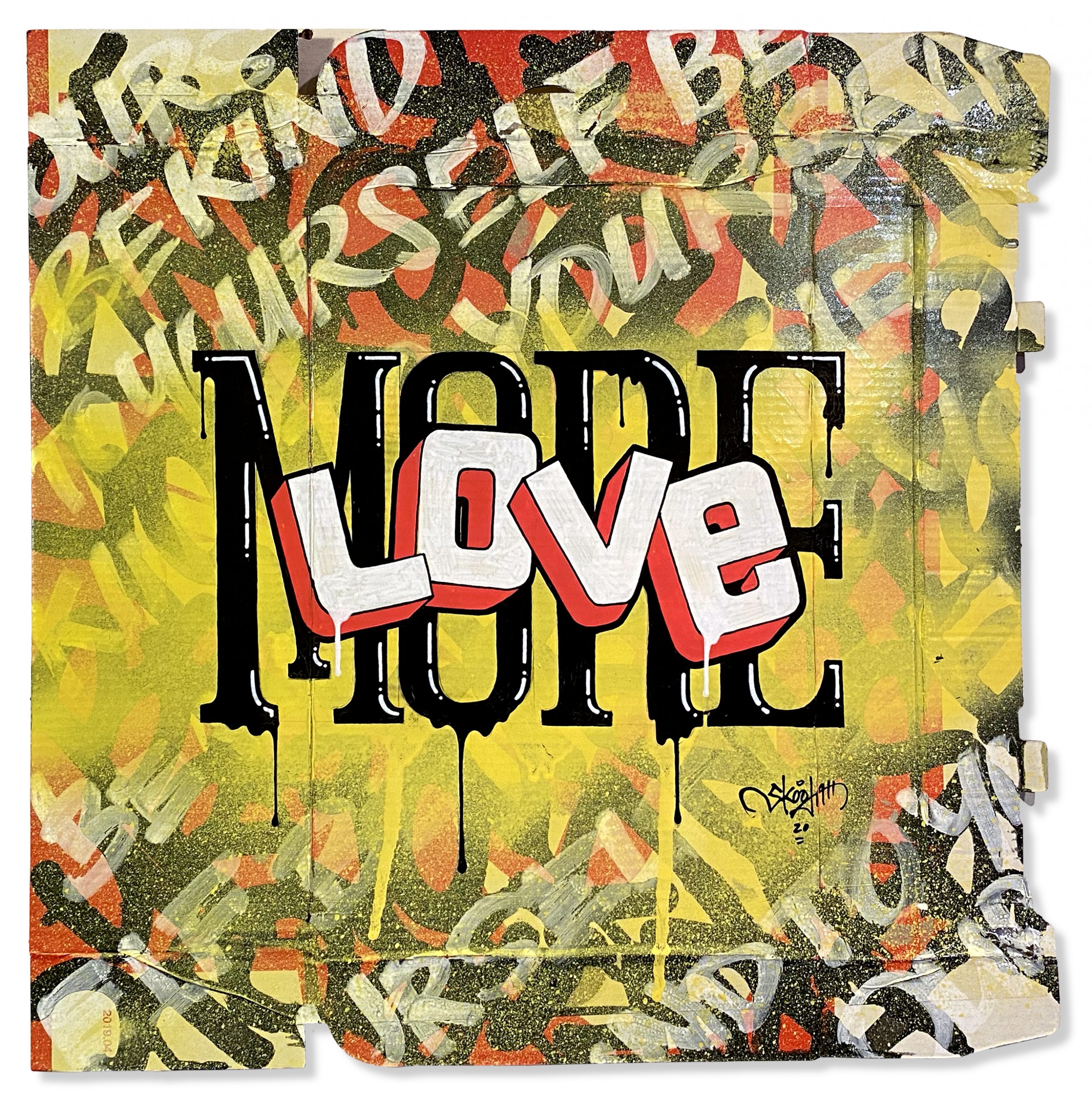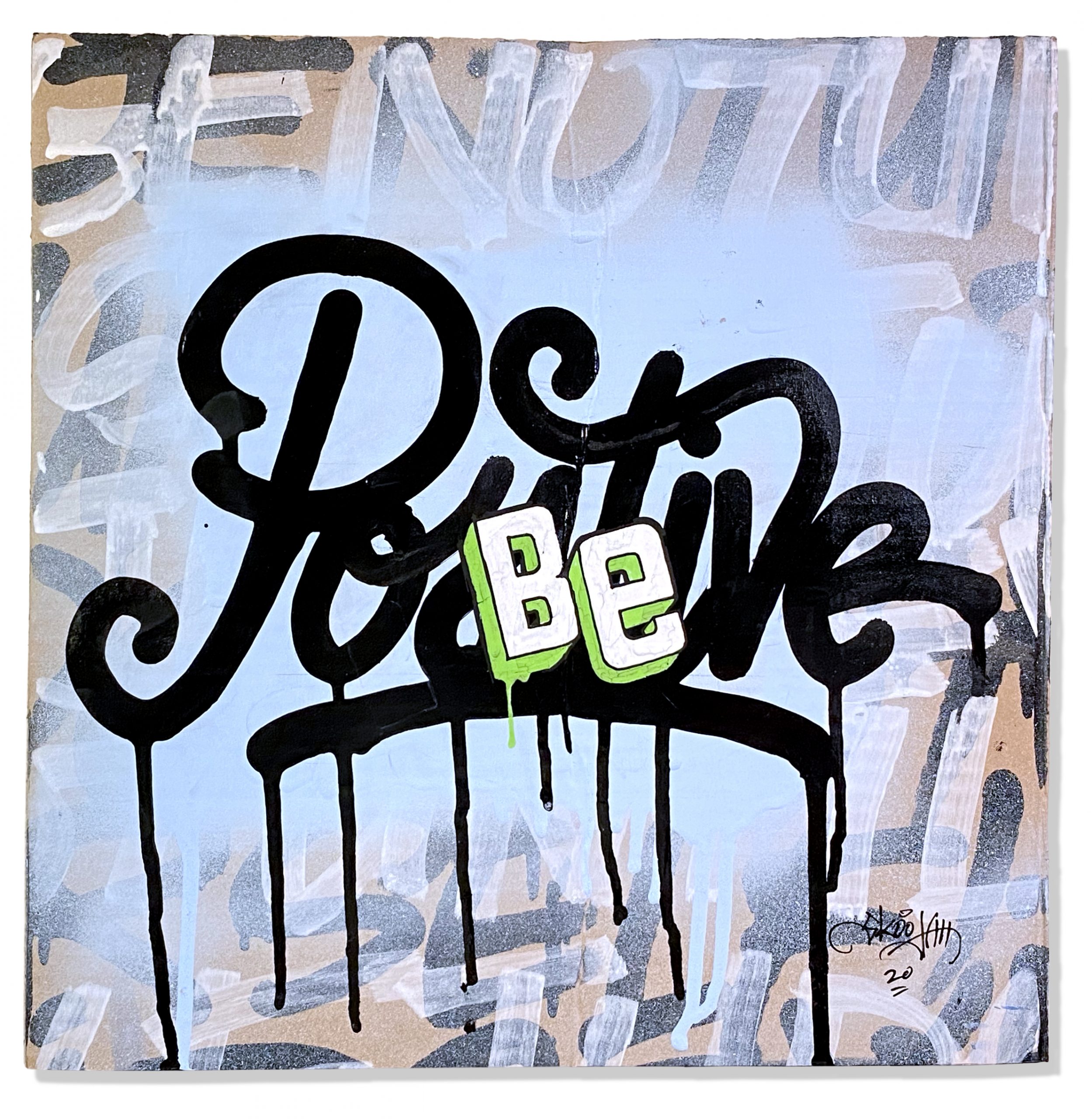 In another effort to up-cycle the Christmas cardboard waste. I did this series of positive statements to remind people to only show good vibes. The world would be a better place if we saw more things about good vibes rather than always seeing the bad. They were originally started to have a solo show in Toronto, then the Covid-19 pandemic hit and the show was canceled. So in my way of staying positive throughout the Covid-19 pandemic I was busy creating these. They were all hand painted using spray paint, paint markers and paint.